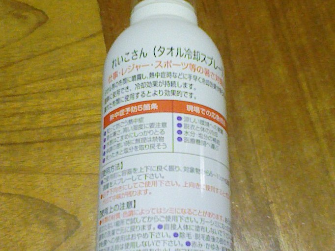 タオルなどの布類に噴射すると、冷却効果があり、しばらく持続する優れものです。