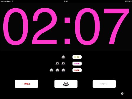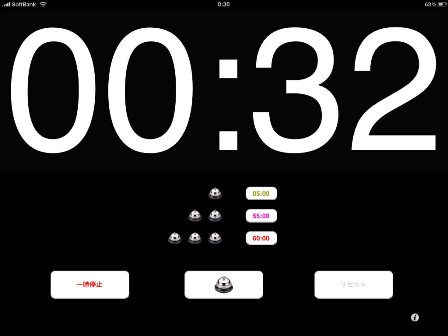 例えば、5分前にベル1回、終了予定時刻にベル2回、5分過ぎにベル3回など、複数設定ができるので便利です。