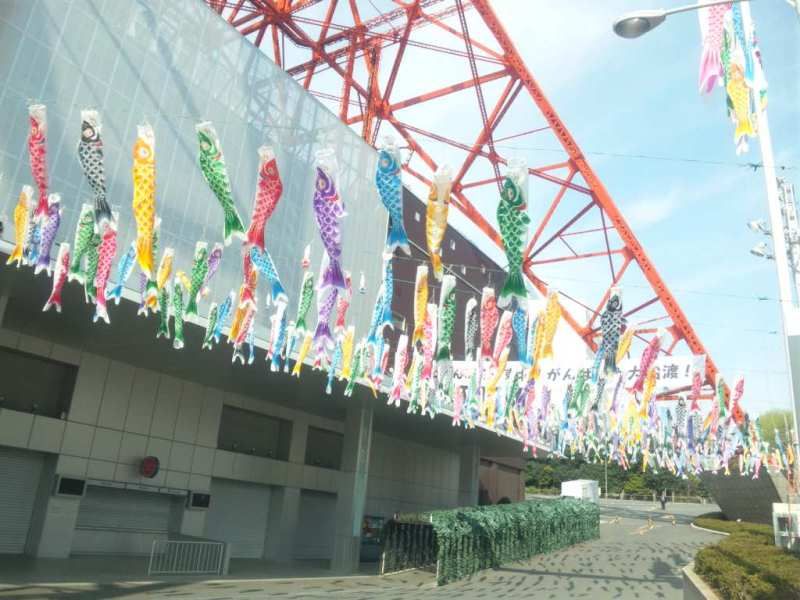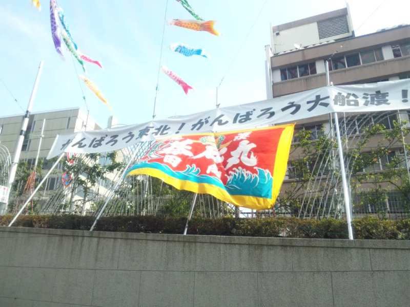 東京タワーの下では、鯉のぼりや大漁旗により、「がんばろう東北!がんばろう大船渡!」と飾られています。