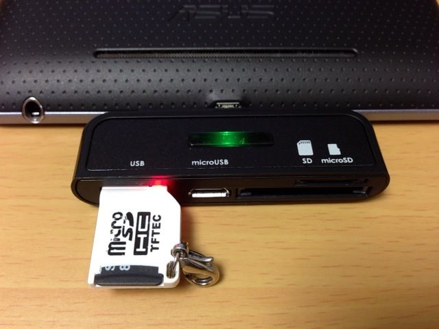 これをNexus7につなげると、microSDカードだけでなく、SDカードやUSBメモリなども接続することができます。