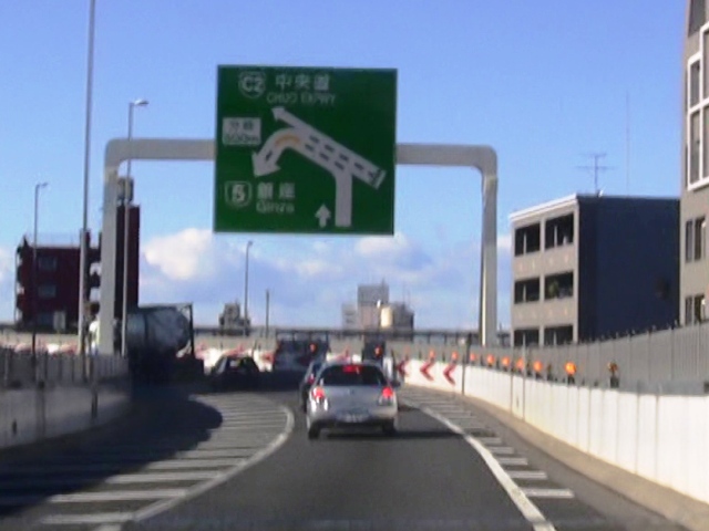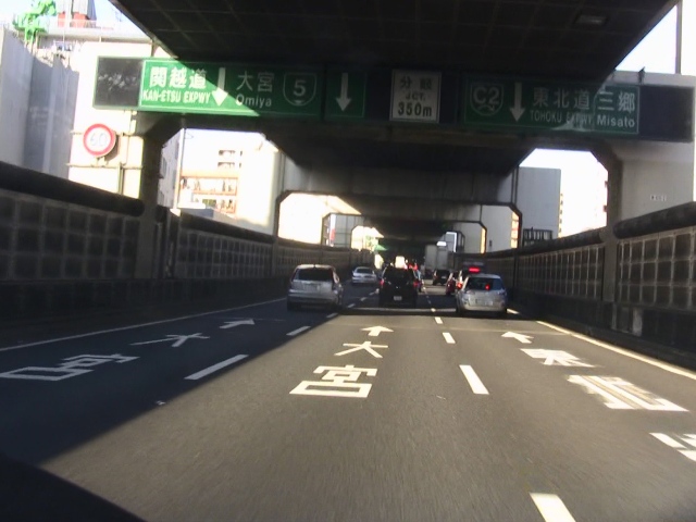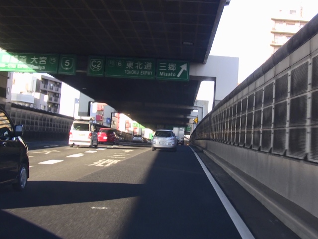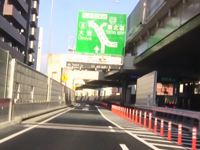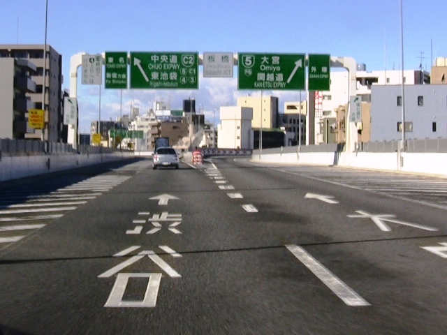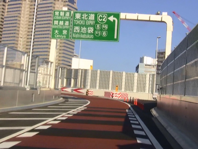 地上へ上がりきると、熊野町JCTにて、5号池袋線との合流になります。