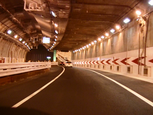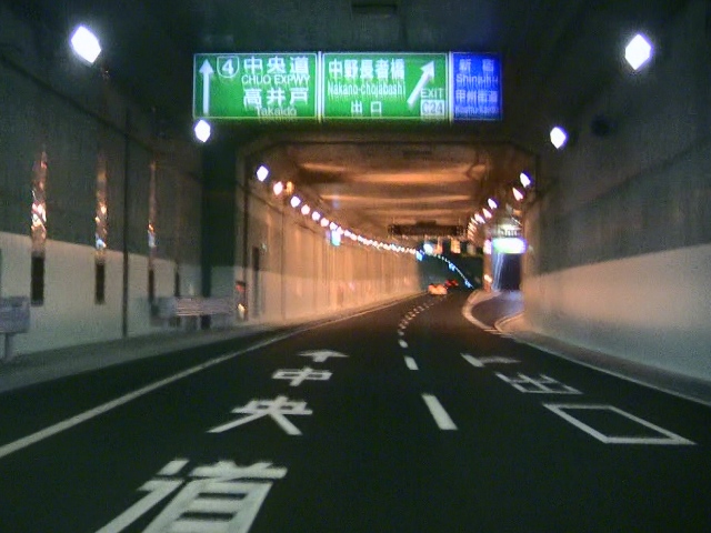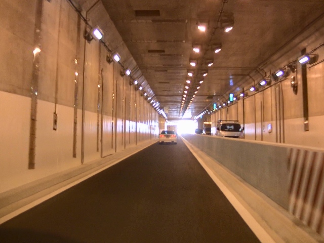 トンネル内はかなり走りやすいですが、すでにオービスも設置されていますので、スピードには注意が必要です。右側の写真が、中野長者橋出口になります。