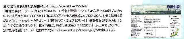 建設現場情報ブログ「現場主義」として、10ページほど掲載させていただきました。