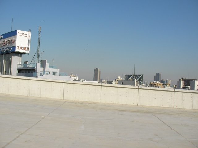 こちらは、将来公園になる予定の屋上部分。外の景色と見比べるとかなり傾斜があるのが分かります。