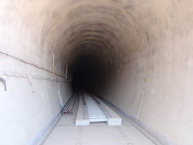 こちらは、新しい川原湯温泉予定地付近の造成工事現場。写真右側に見えている2次製品のトンネル内には新しいJR吾妻線が通ります。トンネルを除くと現在は途中まで線路が敷いてある状態。