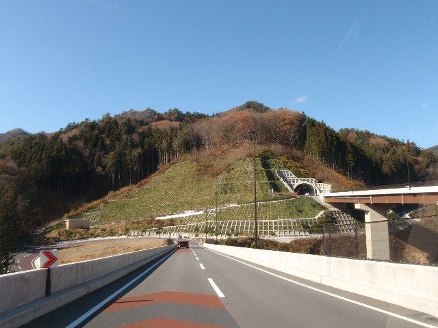 長いトンネル(松谷第1トンネル・松谷第2トンネル)も開通していますが、現道の国道まで(雁ヶ沢ランプは工事中のため)は接続されず、松谷高架橋のところで現道への連絡道で接続されています。