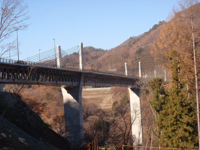 そしてメディアで毎日のように八ッ場ダムの代わりに登場して有名になり、観光地にもなっている湖面2号橋。すでに完成していますが、橋梁の両端の造成工事中のため残念ながらまだ通ることはできません。