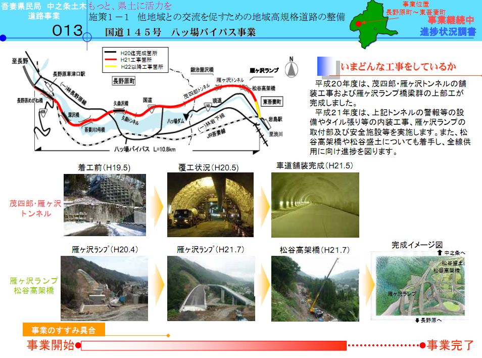 付け替え県道や付け替え国道145号線(八ツ場バイパス)も前回と比較してかなりの距離が開通していました。