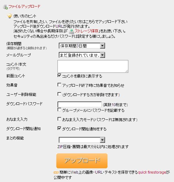 今回おすすめする、容量無制限の無料オンラインストレージ「firestorage」は、同一回線からでも上記のようなサイトより速いスピードでファイルをアップロードすることができます。