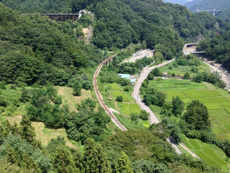 眼下には、水没する箇所にあった旧やんば館が見えます(緑の屋根)。