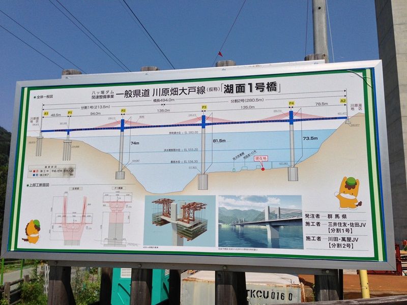 八ッ場ダム完成時に湖面上に浮かぶ湖面○号橋は1号から3号の3本あります。