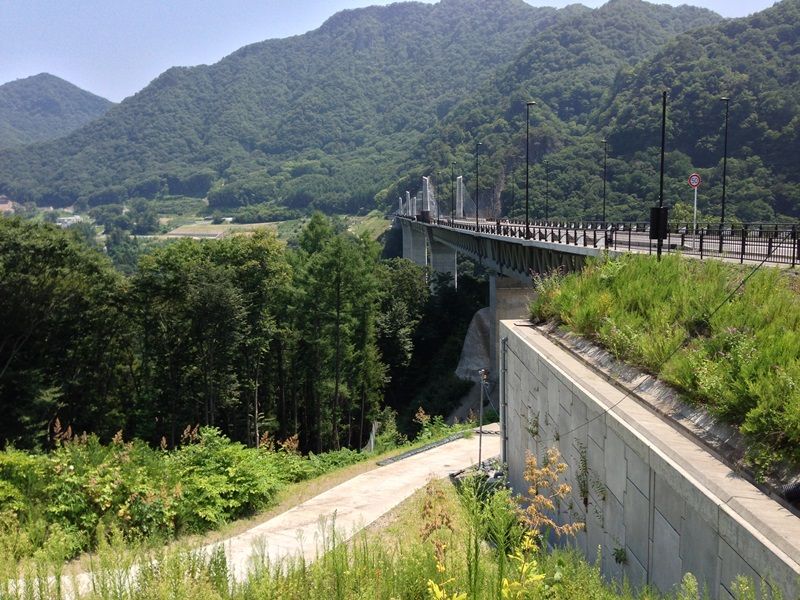 この橋は、三平代替地と打越代替地を接続する県道で、国道145号線八ツ場バイパスと新しい川原湯温泉街を結ぶ橋となります。