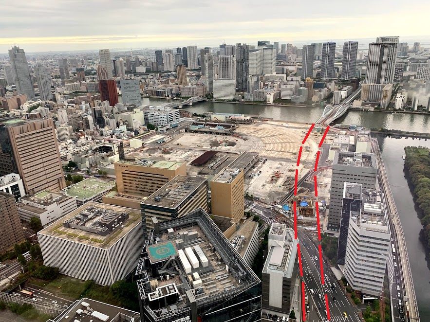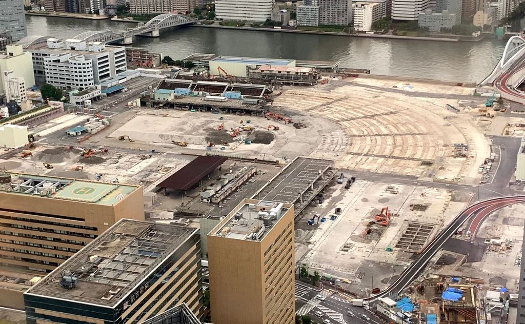 築地市場の解体状況、地上からはあまりよく見えませんが、上からですと良く分かります。